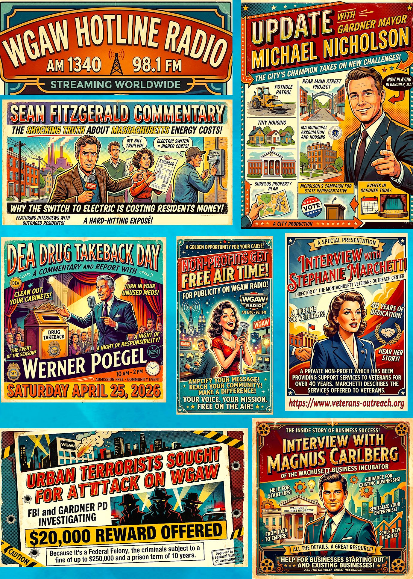 Other segments included a commentary and report with Werner Poegel on Small Modular Nuclear Reactors and the real possibility of Gardner going nuclear. Steve Wendell spoke about the Disability Commission and had an interview regarding Adaptive Sports. Mike Urban’s commentary focused on common sense solutions to MA problems. There was a segment with Governor Maura Healey who used munchkins to illustrate her views on electricity. An interview with David Pierce of Straightaway Records… The show ended with a satire song about “Who Can Take Your Money and Give it to some other guy.”