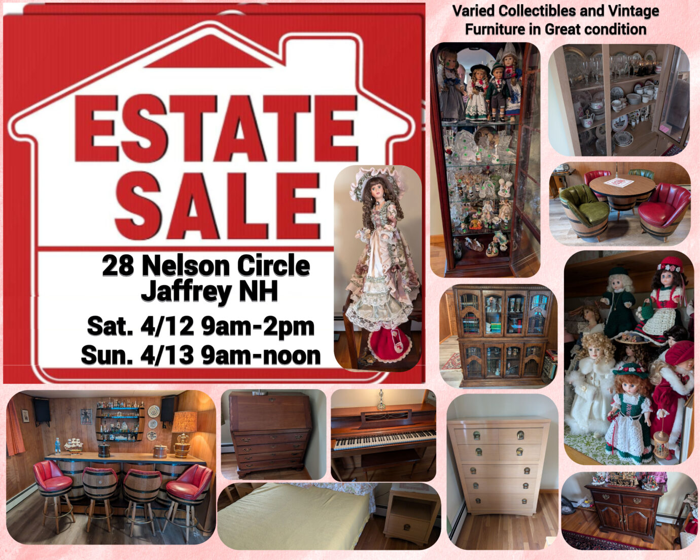 Our Mom passed in December at the age of 88 and this weekend we are having an estate sale. We are opening it up to readers of this publication as well because many of you would be interested in the wide array of collectibles to be offered. Sale will be Saturday April 12th from 9am to 2pm and Sunday April 13th from 9am to noon (no early birds). Location: 28 Nelson Circle, Jaffrey, NH