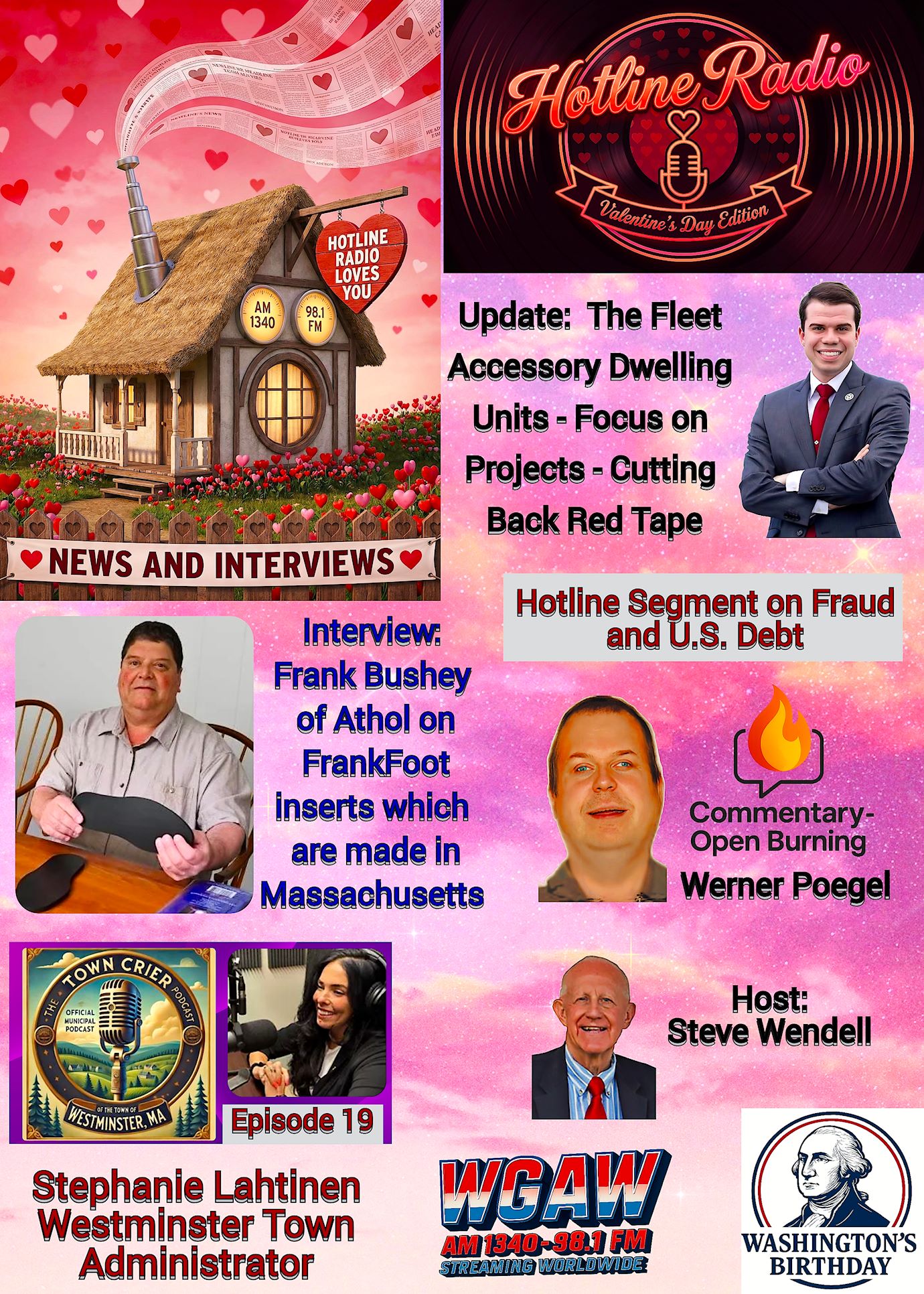 WGAW Extended Hotline โWashingtonโs Birthday Weekendโ show topics include Gardner Government, Templeton Recreation, Presidents Day, and Sludge Landfill Expansion.