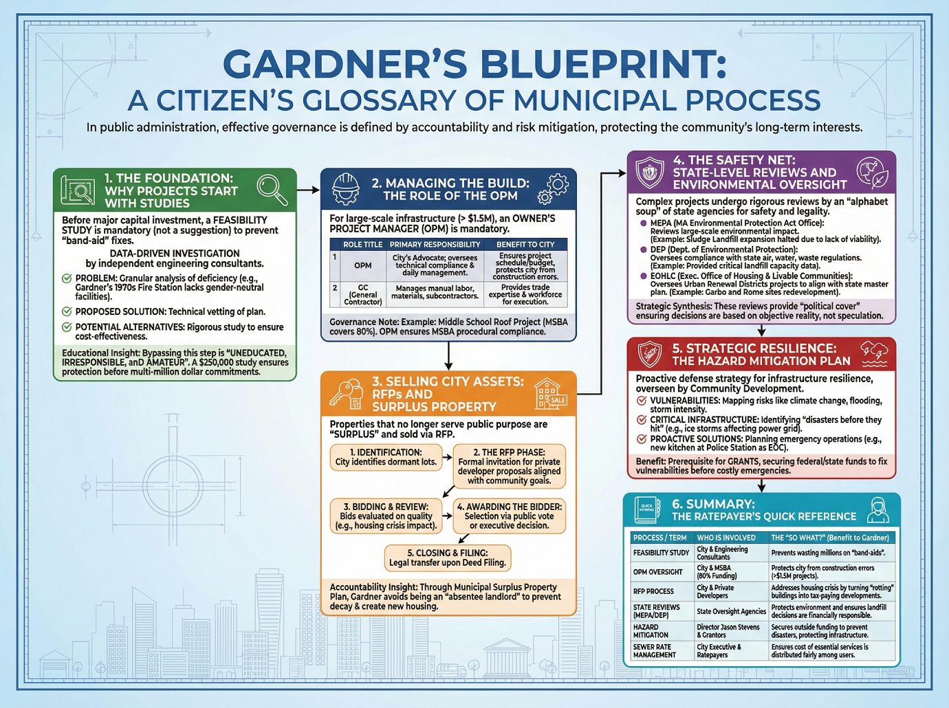 Jump to various reports on this page, CLICK LINK: Gardner Infrastructure: Mayor Nicholsonโs 2026 Vision โโ2026 Gardner Municipal Infrastructure Progress Report: Strategic Modernization & Operational Resilience โโ Gardner Open for Business: A Strategic Framework for Sustainable Growth and Investment โโ The Pulse of the Chair City: A Citizenโs Guide to Gardnerโs Infrastructure โ- Gardnerโs Blueprint: A Citizenโs Glossary of Municipal Process โ-