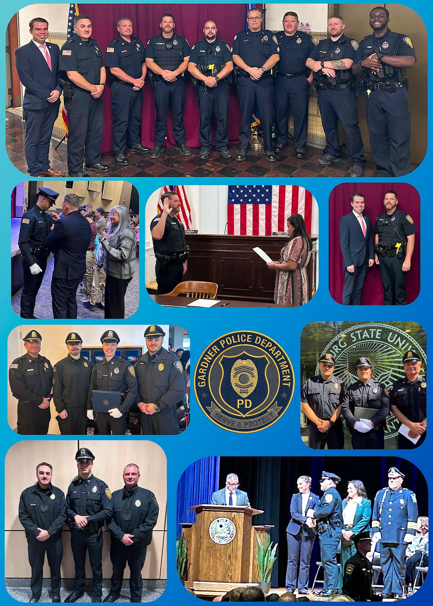 Then, there was some sound you could hardly hear coming from the Hall. I suspect it was the sound of all the police officers who came to support the 3 officers who were sworn in on March 16th because later I saw these photos posted by Gardner Mayor Michael Nicholson.. It is a wonderful testament to the type of cooperative Police Department Chief Eric McAvene and Deputy Chief Nicolaus Maroni have built in the last few years and why the Gardner PD gets so many compliments.