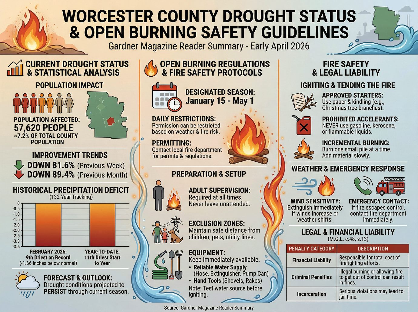 DEEP DIVE โ Drought and Open Burning For the latest Gardner MA drought conditions from Drought.gov, CLICK HERE. For state regulations on open burning, visit this Mass.gov page, CLICK HERE.