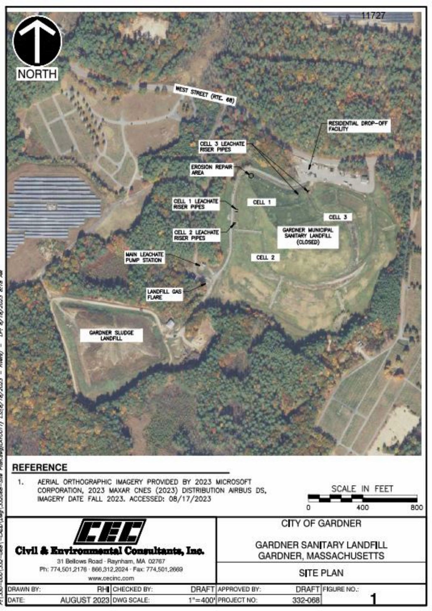 Shown at Center: Various parts of the Gardner Sanitary Landfill. CLICK IMAGE for larger view.