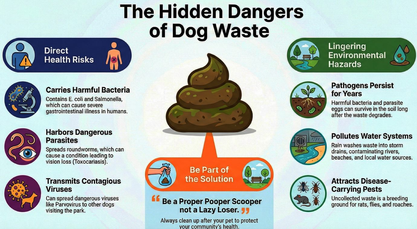 The problem of not picking up Dog Poop at the Gardner Massachusetts Dog Park was addressed scientifically in a post. Local citizen Claude Vautour informs us of the dangers. Claude posted: โThis post is not meant to disrespect the 95 % of responsible owners who actually do pick up their dogโs excrement but to enlighten the other 5% of the health risks when it is not picked up.โ Claude Vautour, one of the admins of the Gardner Dog Park page wrote about the dangers of Dog Poop at the Gardner Dog Park . โDog poop is a significant health hazard because it carries bacteria (like E. coli, Salmonella), parasites (roundworms, hookworms, Giardia), and viruses that can transmit diseases to humans, especially children, the elderly, or immunocompromised individuals, causing issues from diarrhea and fever to blindness (Toxocariasis) and severe infections, and it contaminates water and soil, persisting for long periods.โ The Chair Lady and the Chair Man analyzed Claudeโs information in this โDeep Diveโ discussion.DEEP DIVE โ Dog Waste a Public Health Hazard Our infographic should make the point of the health risks including bacterial, parasitic, and viral infections plus specific diseases such as toxocariasis, giardiasis, campylobasteriosis, and salmonellosis. Thank you to Claude Vautour for caring enough to research this issue.