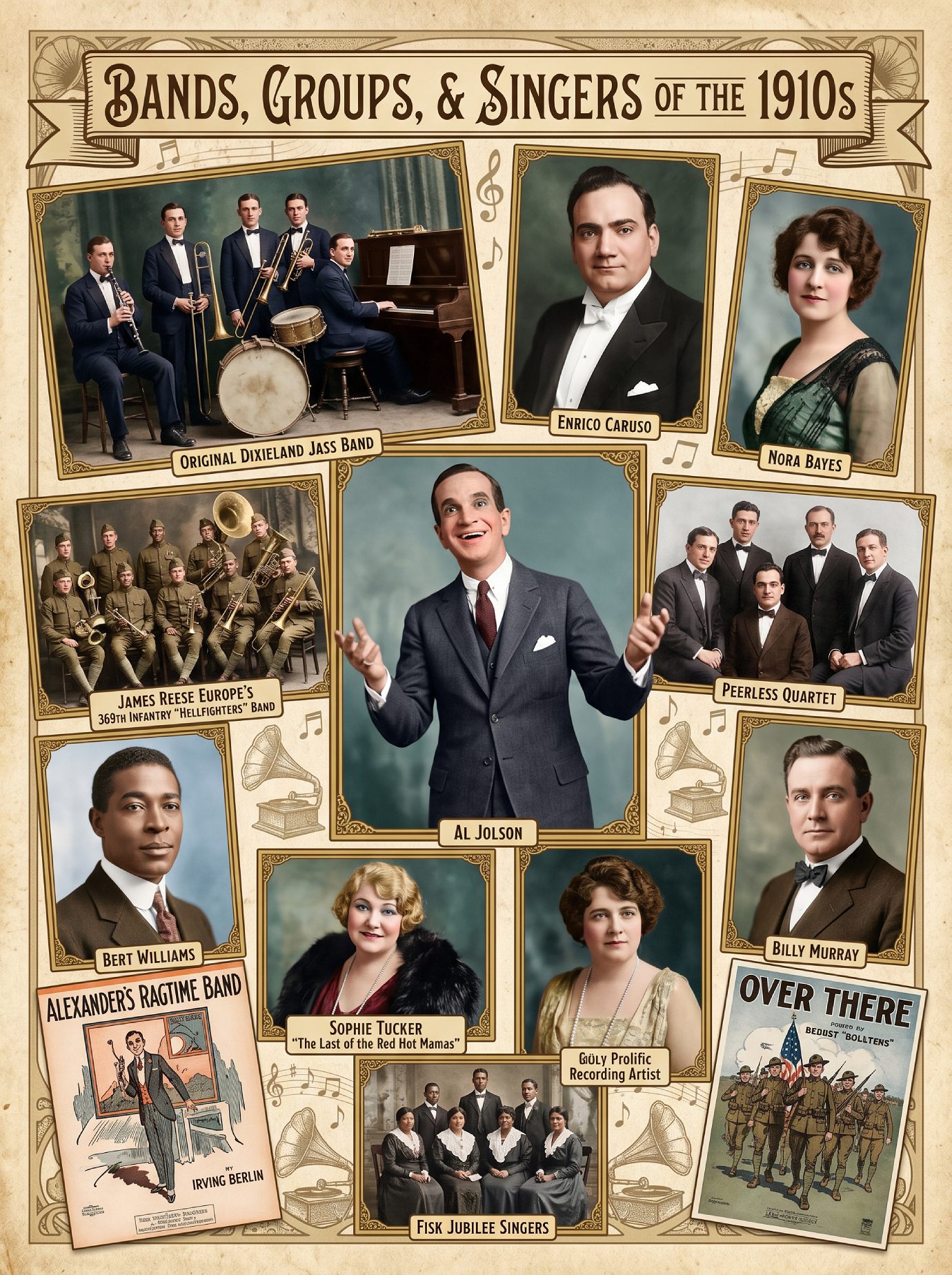 | Vocal Ensembles | American Quartet, Peerless Quartet | Hits like “Moonlight Bay” and “Let Me Call You Sweetheart.” |