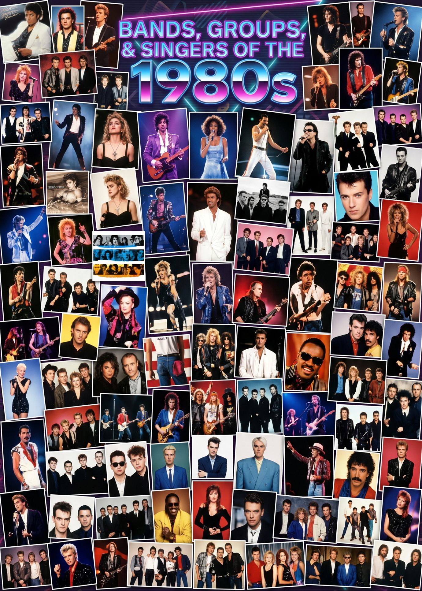 - Pop Icons:ย Michael Jackson (ย Thriller), Madonna, Prince, and Whitney Houston.