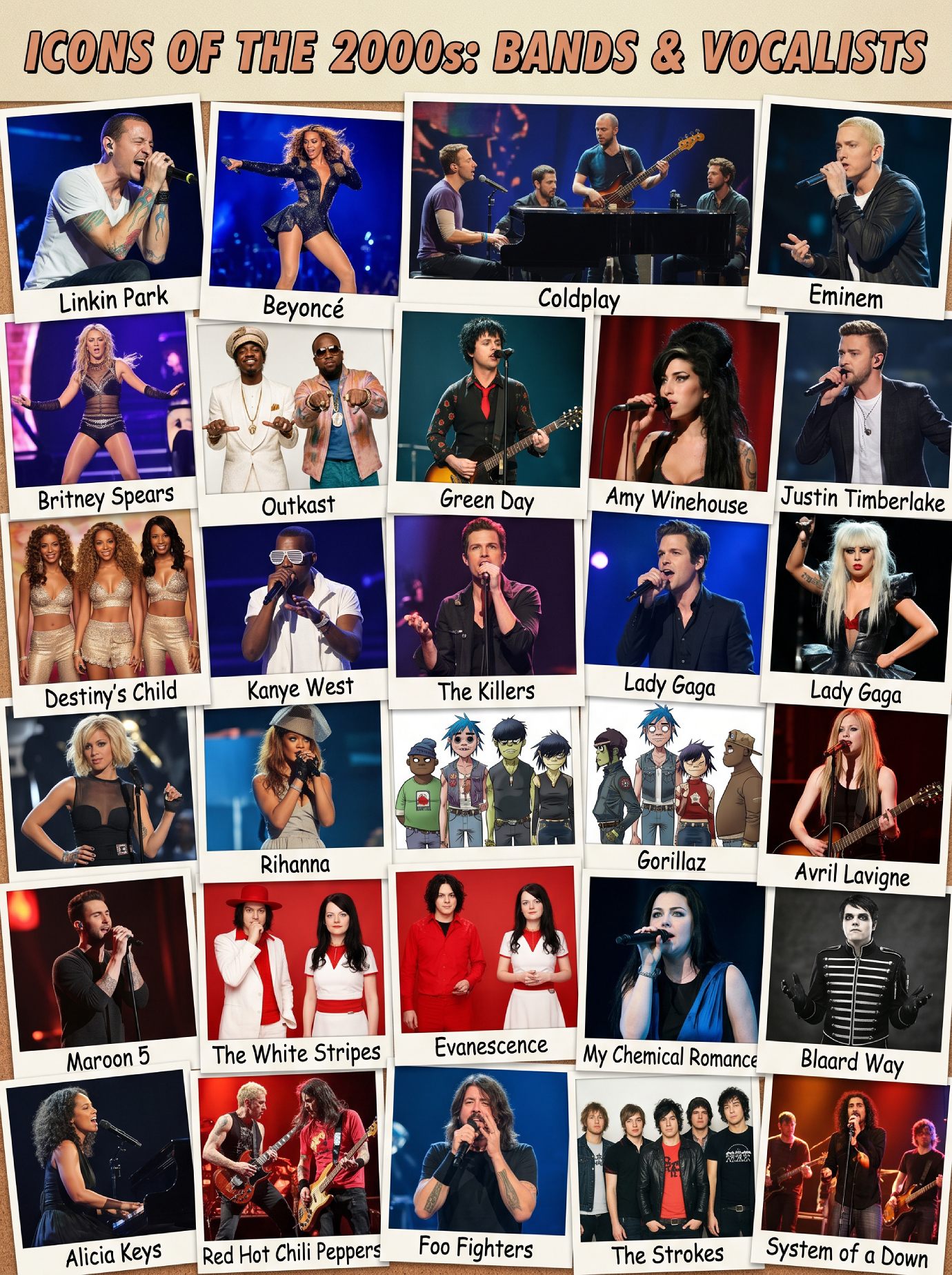 - Rock Revivals:ย The Strokes (garage rock) and Linkin Park (nu-metal).