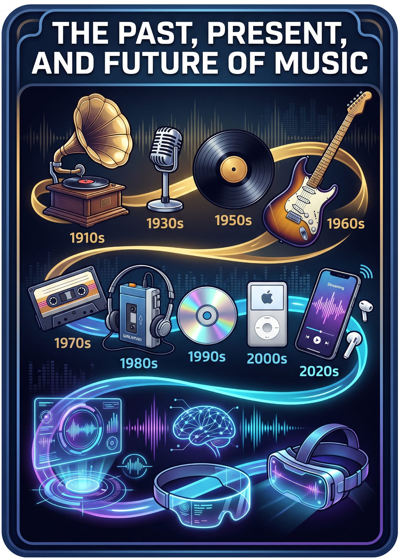 | 2040s | Hyper-Personalization | Niche, algorithmically generated idols and biometric compositions reacting to listener heart rates. |