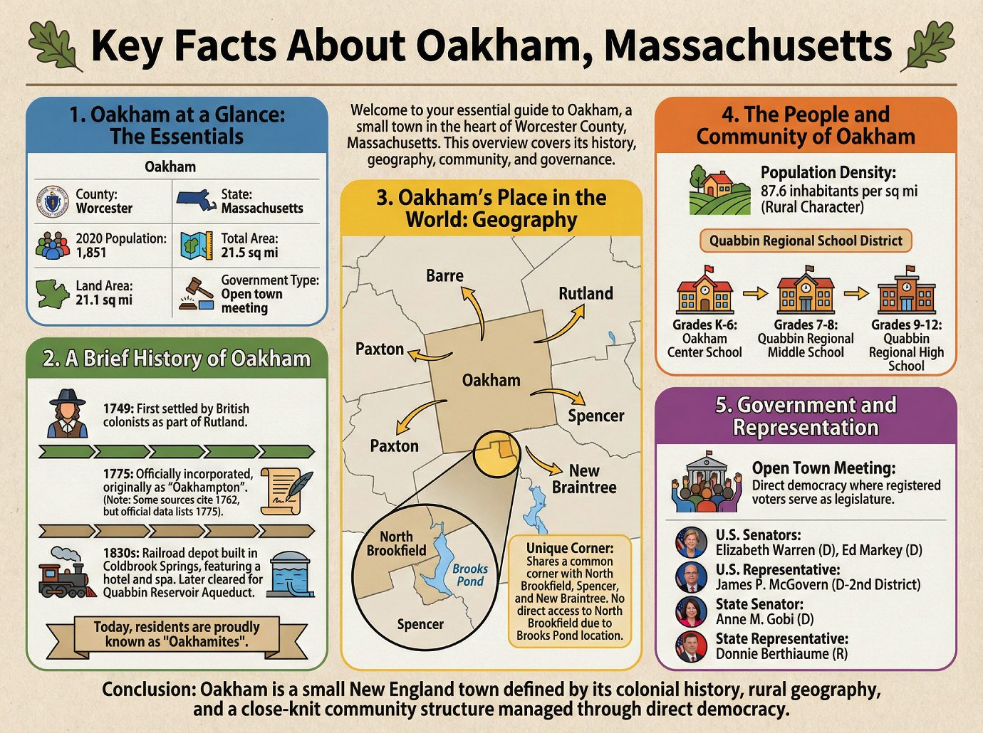 Welcome to your essential guide to Oakham, a small town located in the heart of Worcester County, Massachusetts. This document is designed to provide a clear and structured overview of the town’s most important characteristics, from its foundational history to its modern-day governance. Whether you’re a student of civics, geography, or simply curious about this New England community, the facts below offer a solid starting point for understanding what makes Oakham unique.
