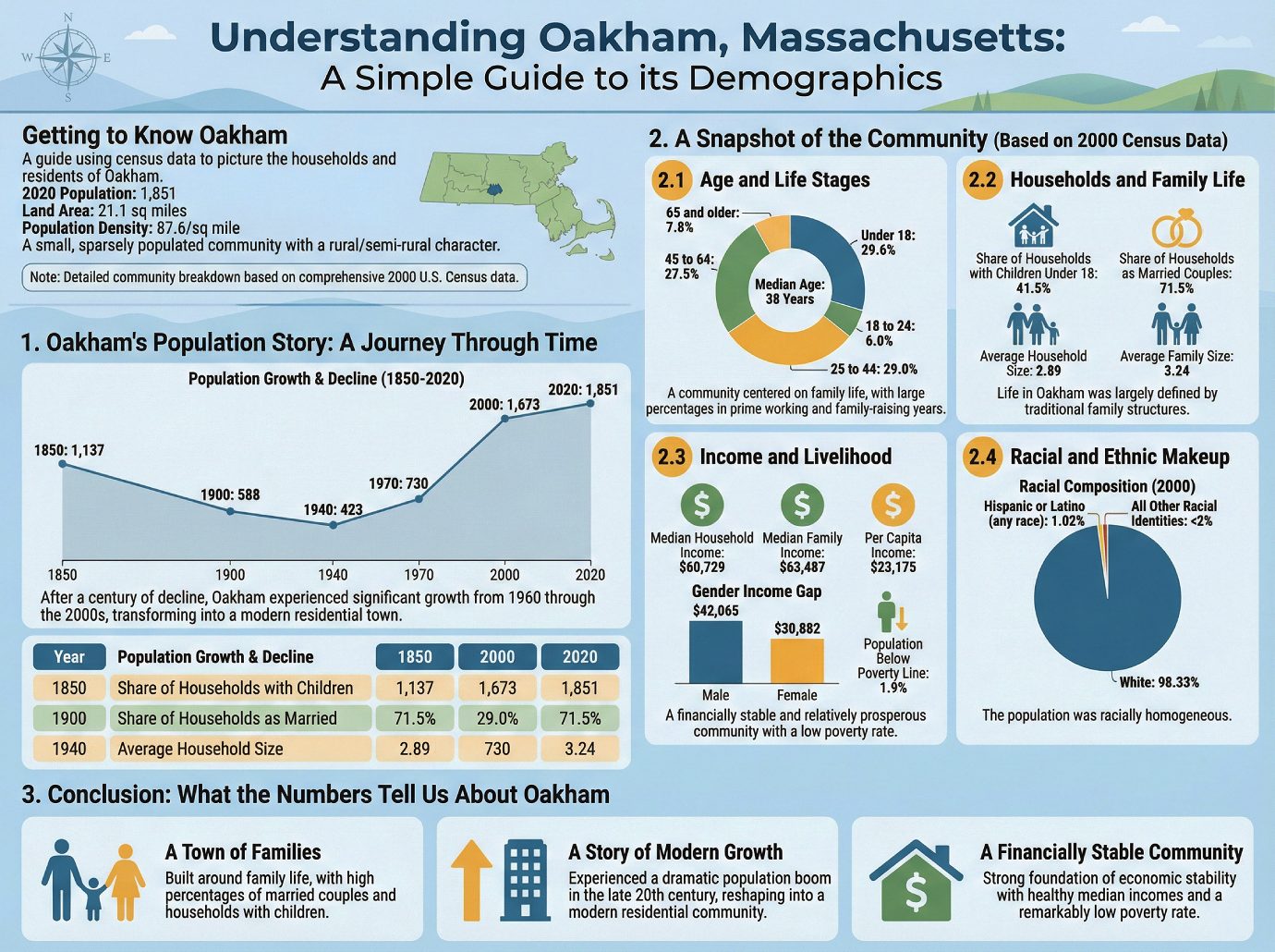 Understanding our community begins with understanding its people. This guide uses census data to paint a clear picture of the households and residents that make up Oakham, Massachusetts.