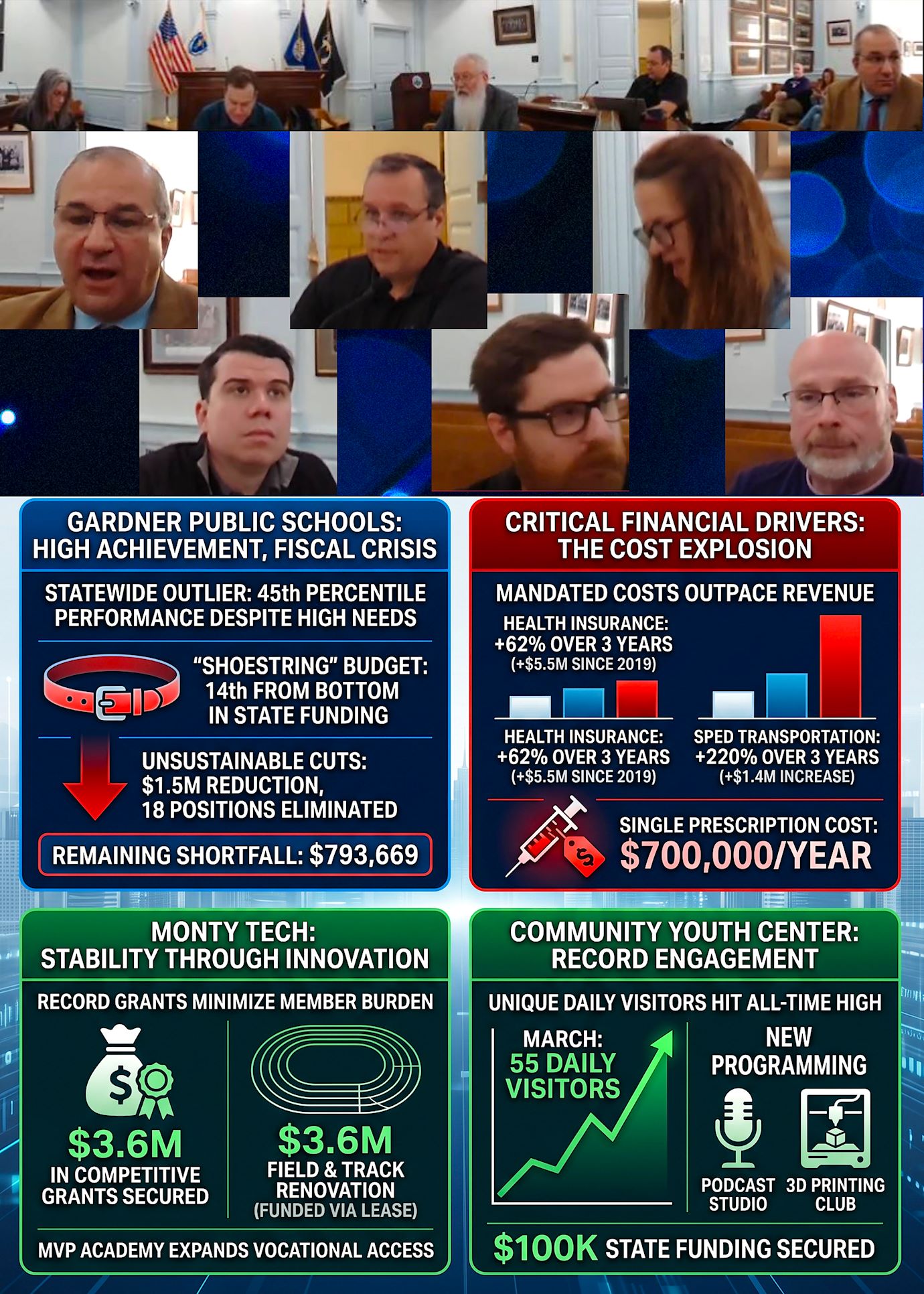 Local officials and educators describe a funding crisis driven by skyrocketing costs for health insurance, special education transportation, and out-of-district placements. Despite these financial hurdles, the Gardner Public Schools demonstrate high performance relative to their high percentage of low-income and high-need students.